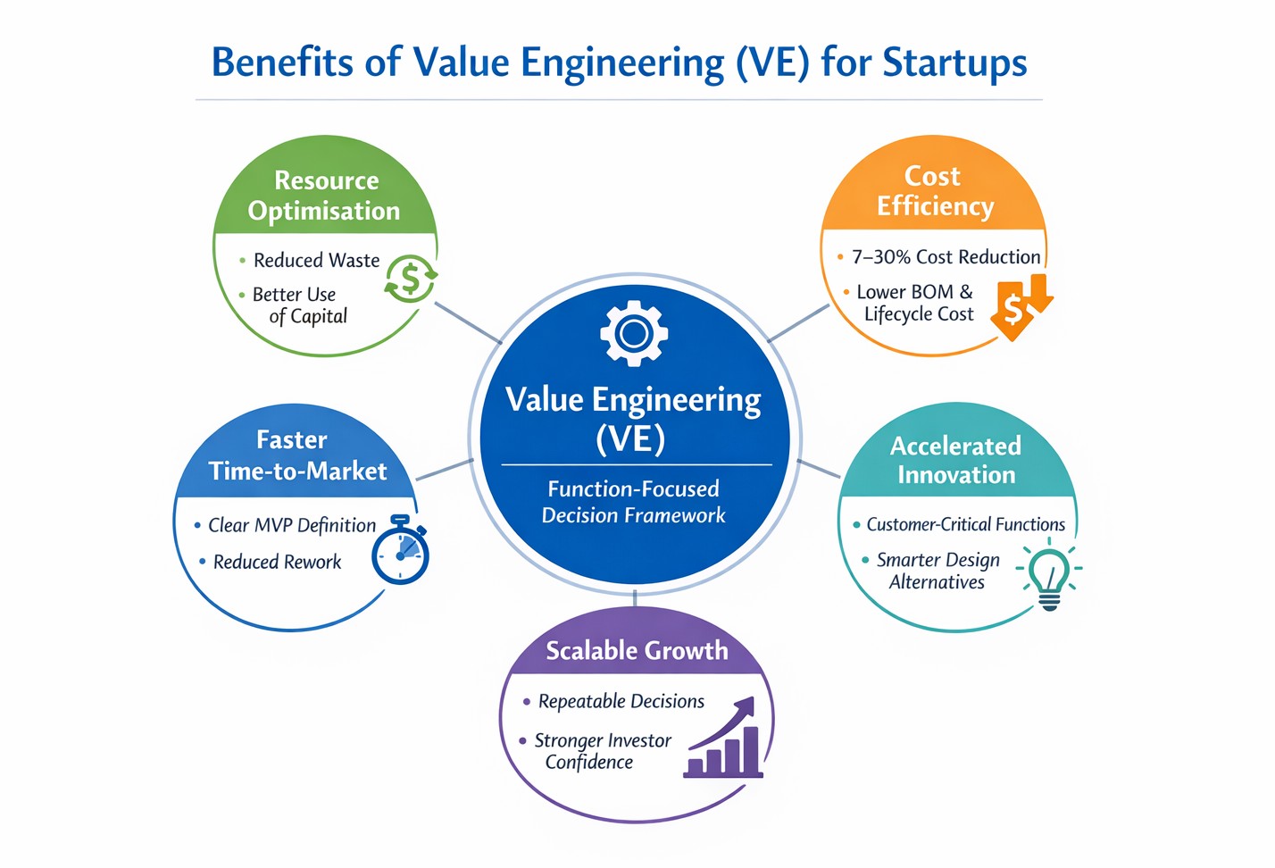 In an environment where capital efficiency, speed, and scalability define survival, Value Engineering (VE) offers startups a structured, evidence-based way to optimise resources while accelerating innovation — without compromising customer value.